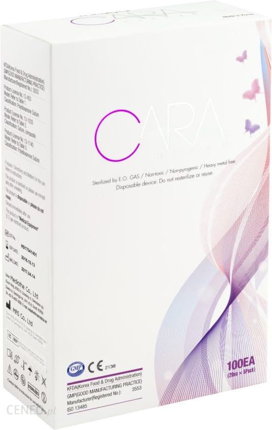 Cara – nici PDO Mono to podstawowy model nici PDO używany w celu wzmocnienia i naciągnięcia skóry poprzez pobudzenie produkcji kolagenu. Polecana dla początkujących użytkowników oraz jako element bardziej złożonych kompozycji wraz z innymi nićmi. Trwałość efektów 6-8 miesięcy. Jak działają nici PDO? Polidioksanon (PDO) jest syntetycznym włóknem, które po pewnym czasie całkowicie rozpuszcza się w tkance. Znalazł zastosowanie w produkcji szwów skórnych i podskórnych, dlatego w medycynie wykorzystywany jest od wielu lat. Pomysł na użycie nici PDO w zabiegach estetycznych narodził się w Korei i szybko zdobył popularność na całym świecie. Zabieg polega na wprowadzeniu pod skórę (w wybrane obszary) nici PDO za pomocą bardzo cienkiej igły. Po wprowadzeniu igła jest usuwana, a na skórę założony opatrunek. Zastosowana kuracja wytwarza swoiste rusztowanie, wokół którego organizm rozpoczyna proces neokolagenezy (produkcja nowych włókien kolagenowych), pobudzenie fibroblastów do zwiększonej syntezy elastyny oraz syntezę endogennego kwasu hialuronowego. Skóra po zabiegu staje się bardziej sprężysta, napięta, elastyczna. Zastosowanie: wzmocnienie skóry twarzy i ciała, rewitalizacja skóry, poprawienie wyglądu skóry w okolicy oczu, likwidacja zmarszczek, konturowanie ust, rewitalizacja środkowej części szyi, modelowanie sylwetki. Zalety stosowania: czas rekonwalescencji, efekt utrzymujący się nawet do 8 miesięcy, możliwość powtarzania zabiegu, zwiększenie efektów podczas łączenia zabiegów PDO z zabiegami wolumetrycznymi, naturalność uzyskanego efektu, duża różnorodność w gamie produktowej umożliwia spersonalizowanie zabiegu, brak nacięć i blizn. Skład: Polidioksanon (PDO) – włókno syntetyczne stosowane do zabiegów liftingujących. Protokół: Rodzaj: nici PDO Mono, dostępne rozmiary: 26G 38mm, 26G 50mm, 26G 90mm, 29G 38mm, 29G 50mm, 30G 25mm, 30G 25mm – kaniula pod oczy/usta, 30G 38mm. Opakowanie: 20 szt (2 x 10szt.). Produkt może być stosowany wyłącznie przez profesjonalistów. Dokonując zakupu oświadczasz, że jesteś lekarzem lub kosmetologiem przeszkolonym z zakresu medycyny estetycznej.
