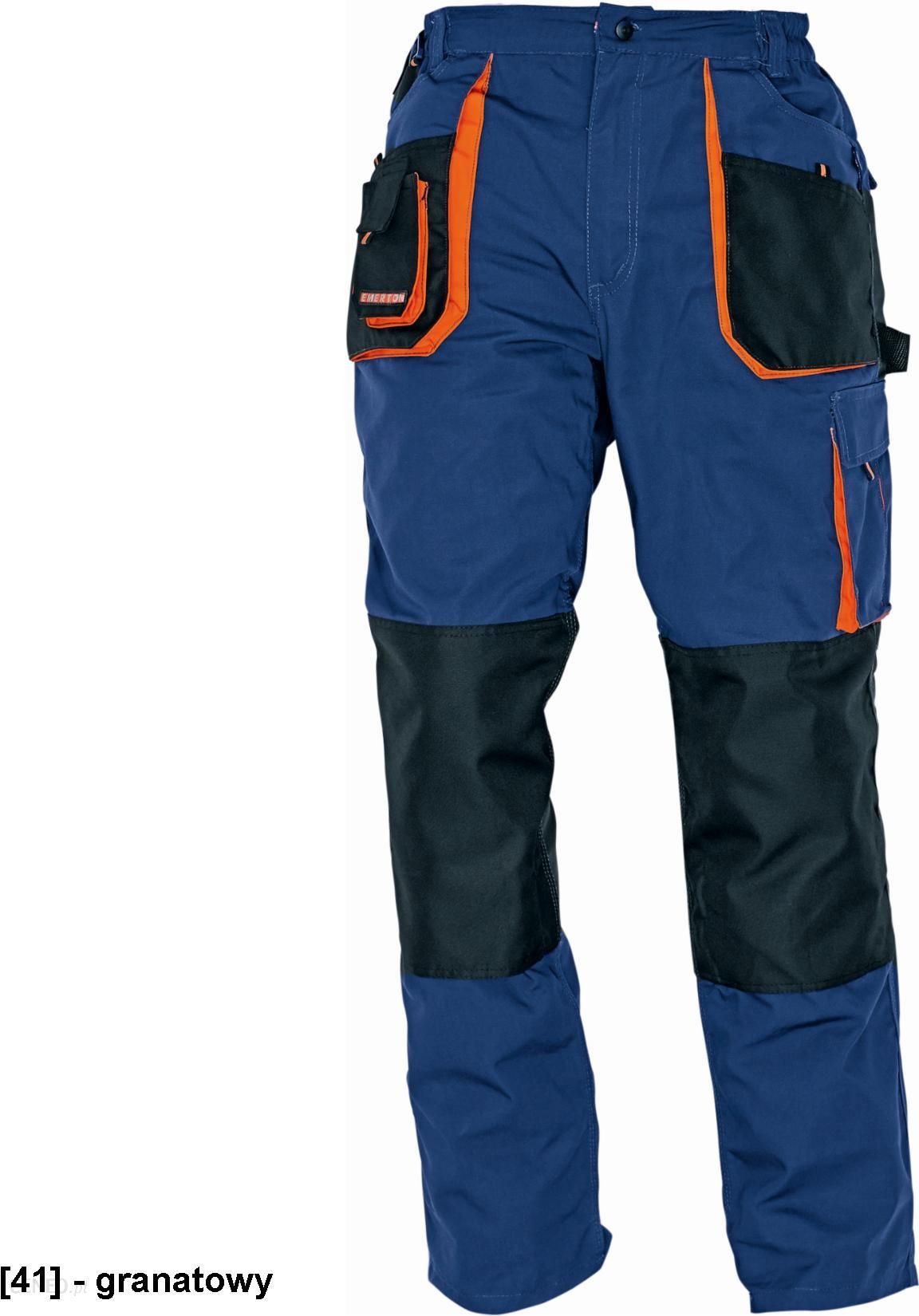 EMERTONWygodne i wytrzymałe spodnie robocze.W newralgicznych miejscach wzmacniane poliestrem 600D.Podwójne wzmocnienia na kolanach umożliwiające włożenie nakolanników.Pętelka na młotek.Zaprojektowane z myślą o wymagających warunkach pracy.